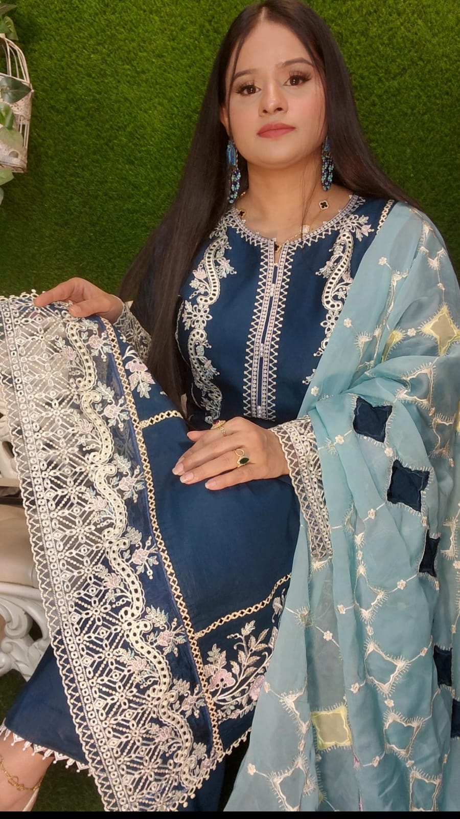 Orna Pakistani pure maslin type with 66 fixed patches work plus zero sequence embroidery work