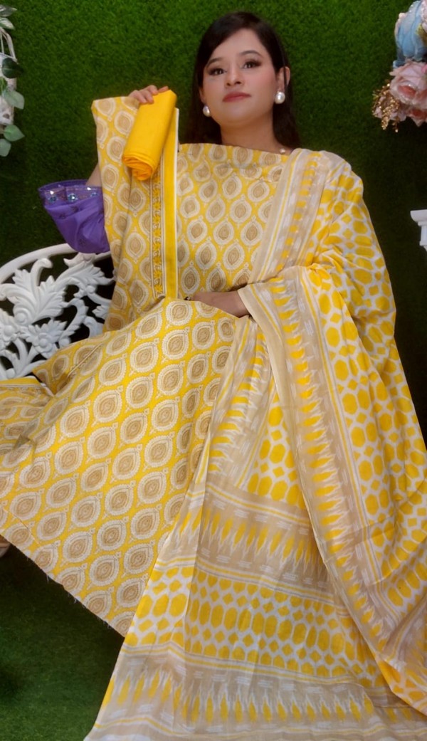 Pure cotton unstitched 3 ps