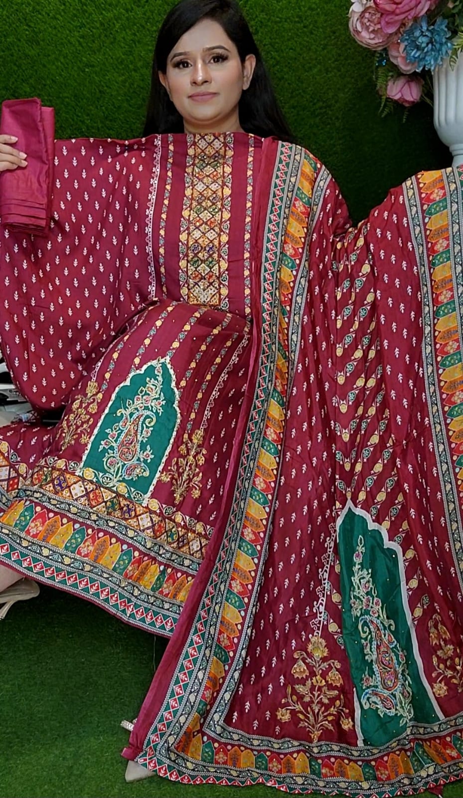 Unstitched handwork cotton silk boutique 3 ps