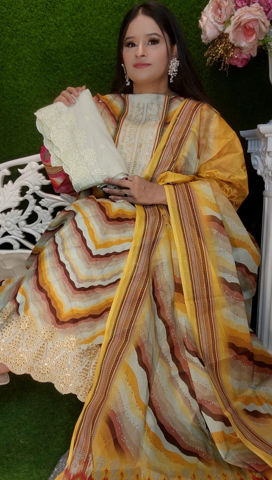 Chikenkari cotton unstitched boutique 3 ps